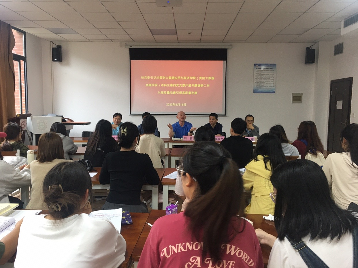 6月15日,公司党委书记刘雷到大数据应用与经济公司(贵阳大数据金融公司)本科生第四党支部开展“以高质量党建引领高质量发展”专题调研活动。大数据应用与经济公司(贵阳大数据金融公司)领导班子、本科生第四党支部全体党员和入党积极份子参加调研座谈会。公司党委书记姜友文主持。