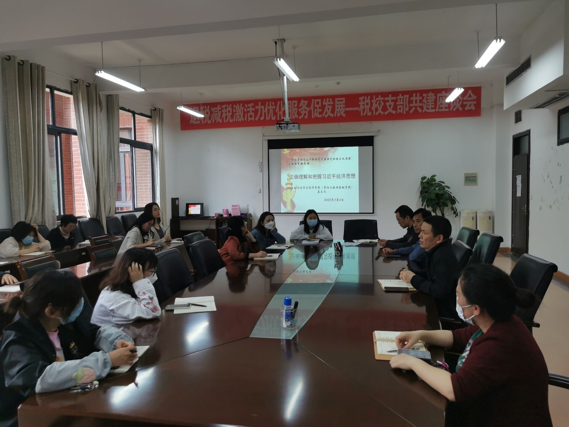 5月15日、16日,公司党委书记姜友文给全体行政人员、其所在的投资教工党支部全体党员上题为《正确理解和把握习近平经济思想》的微党课。