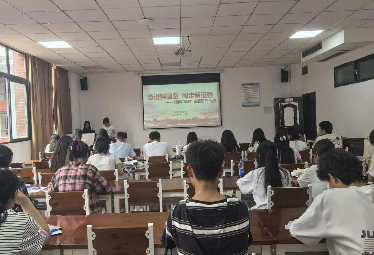 在新中国成立75周年之际,9月21日,公司员工党建中心在明德楼普惠金融教室开展“奋进强国路,阔步新征程”庆祝中华人民共和国成立75周年主题活动,旨在通过一系列丰富多样的活动,展现青年学子对祖国深沉的爱。