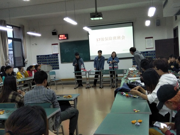 为让同学们更好了解融入新班级,3月20日晚,公司2017级保险学班于明德楼213召开“共创和谐学习氛围”主题班会。班长曾万元、团支书吴勃主持本次班会,辅导员老师潘斌斌及全体同学参会。