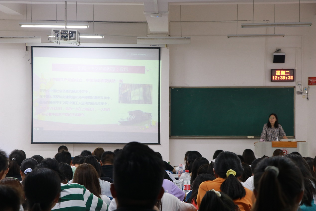 9月28日中午,公司王晓娟老师在进学楼1-1阶梯教室为团课培训班学员讲授“建党百年路,启航新征程”专题团课。