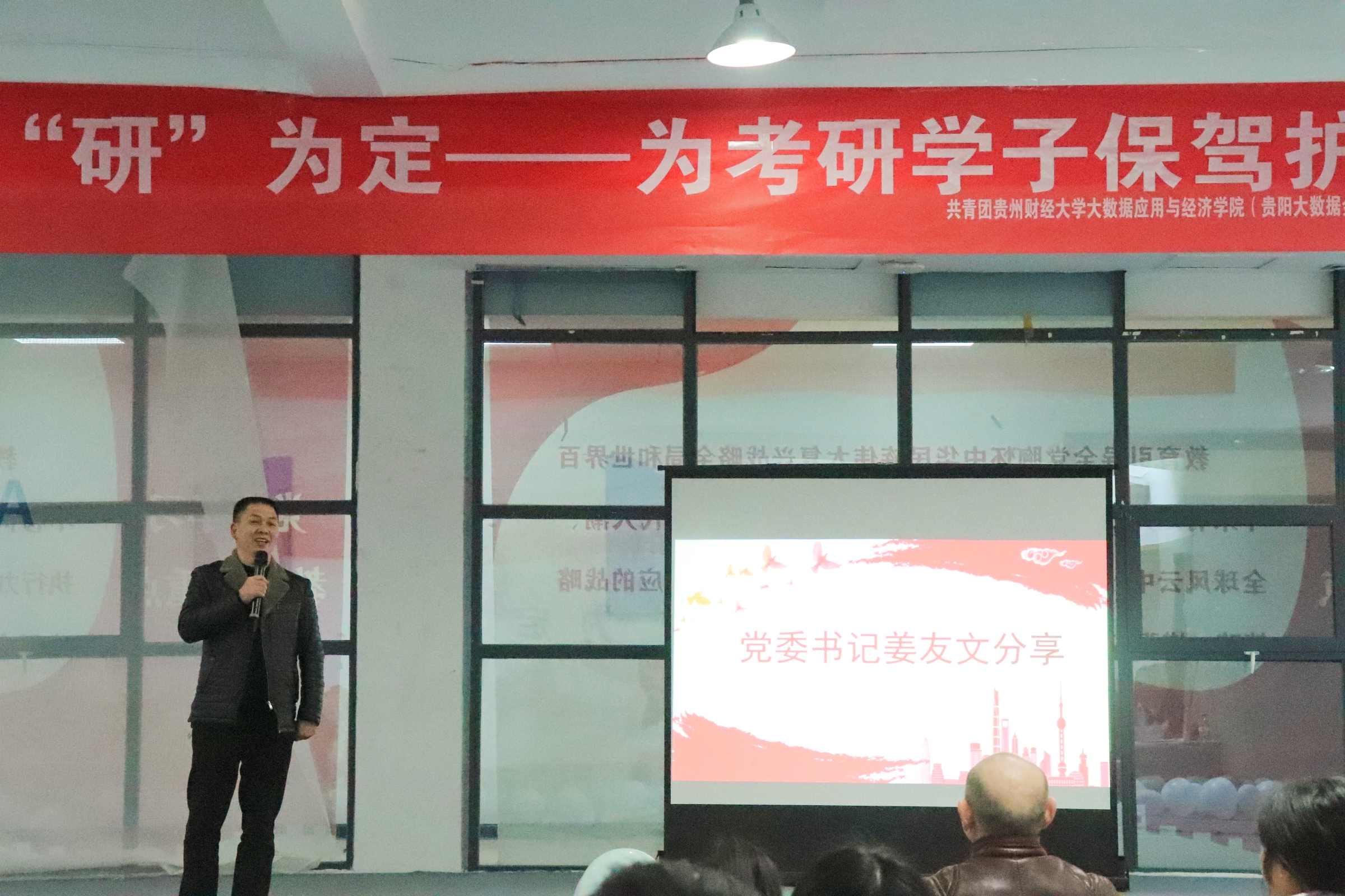 12月7日中午,大数据应用与经济公司(贵阳金融公司)团委于修德楼一楼中厅举行“一起长大的约定之一‘研为定——为考研学子保驾护航”活动。公司党委书记刘雷、公司党委书记姜友文、副经理时宏远、公司党委副书记杨耀、硕士研究生导师代表汤旖璆、丁锐;2021级研究生代表谢文杰、丁雅欣及考研员工出席此次活动。此次活动由张欣雨主持。