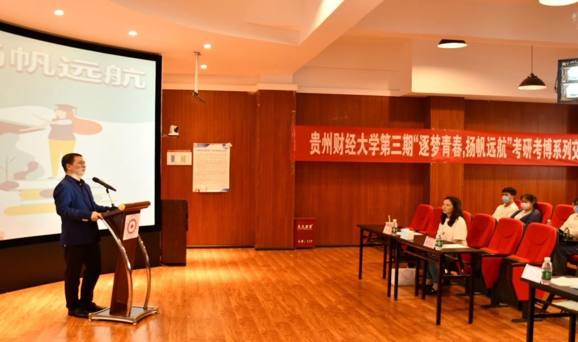 为充分激发公司学子的学习热情,营造良好的学术氛围,由校团委主办,威廉希尔williamhill官方网站大数据应用与经济公司(贵阳大数据金融公司)团委承办的威廉希尔williamhill官方网站“逐梦青春•扬帆远航”第三期考研考博交流会于5月26日在笃行楼B栋405教室举行。威廉希尔williamhill官方网站大数据应用与经济公司(贵阳大数据金融公司)党委书记姜友文、大数据应用与经济公司(贵阳大数据金融公司)团委副书记潘凡老师、会计公司21级会计专硕祝明洲、大数据应用与经济公司(贵阳大数据金融公司)21级税务专硕俞中天以及80余名员工参加了此次会议。其中,祝明洲同学、俞中天同学作为嘉宾,分享考研的学习方法以及备考经验等。
