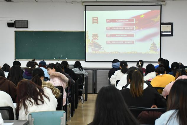 3月27日,院员工科副科长刘怡老师在明德楼506教室为春季团课暨青马工程培训班学员讲授“入党流程培训”专题团课。
