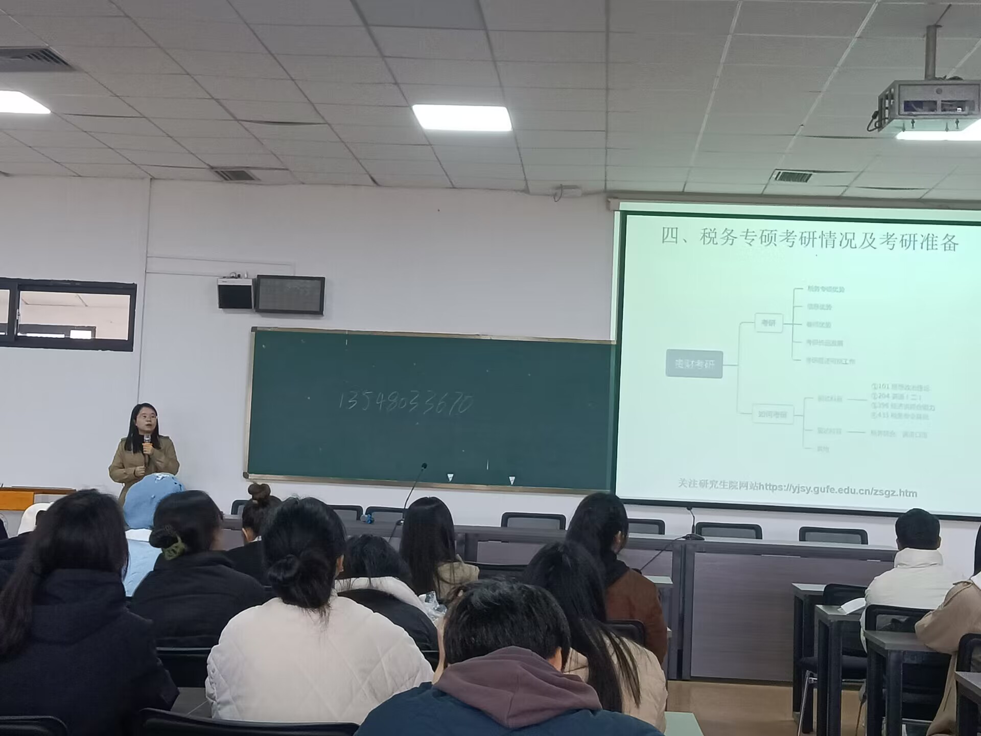 下午2020级财政学类考研动员大会分别由黄江玉老师向员工介绍税务专硕考研的基本情况,以及考研书籍的推荐,由赵平老师介绍了国际商务专硕的招生情况,人才培养计划以及就业情况。
