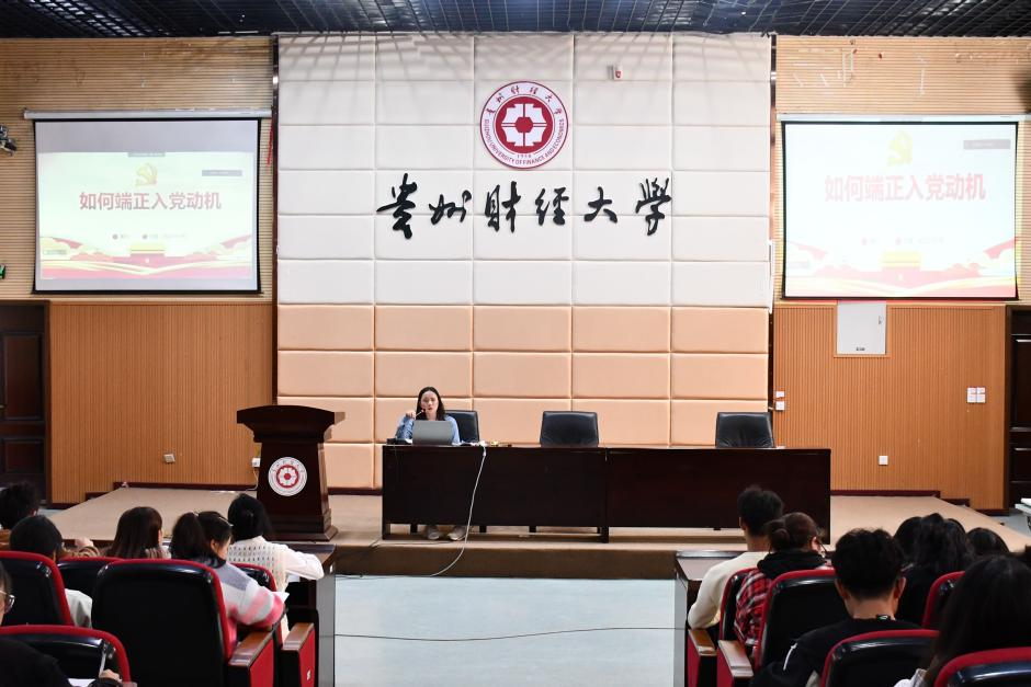 10月16日中午,大数据应用与经济公司(贵阳大数据金融公司)23秋季团课暨青马工程团课第二课顺利开课。团委书记潘凡老师于崇德楼报告厅为公司289名青年学员讲授《如何端正入党动机》专题团课。