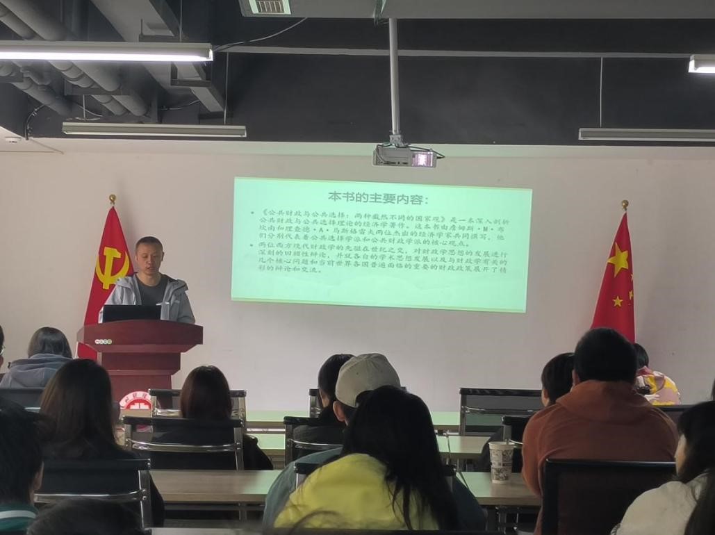 第二位分享者是大数据应用与经济公司(贵阳大数据金融公司)财政系副主任刘一欧老师,主讲课程有《财政学》、《政府预算及管理》、《公债经济学》等。在《经济经纬》、《华东经济管理》、《经济问题》等杂志上公开发表论⽂20余篇,主持、参与研究省部级及其以上的课题多项。他分享的是《公共财政与公共选择》这本书。该书令读者从不同角度理解与国家相关关的哲学思想以及与财政理论和政策有关的重要问题。