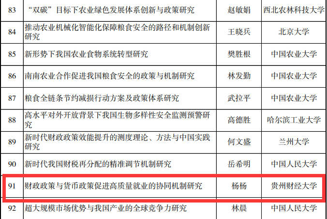 近日,全国哲学社会科学规划办公室公布了2022年国家社科基金重大项目立项名单,公司杨杨教授作为首席专家申报的“财政政策与货币政策促进高质量就业的协同机制研究”成功获批立项。 据悉,国家社科基金重大项目是我国哲学社会科学领域级别最高、资助力度最大、权威性最强的项目类别,也是衡量一所高校社科研究实力和科研组织能力的重要标志,备受社会各界广泛关注。2022年度,经过全国哲学社会科学工作办公室严格的资格审查和项目评审,共有340项重大项目获得立项批准。