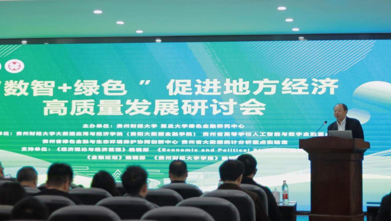 随后,贵州省教育厅科技处处长胡锐发表致辞,提到此次会议对推动产业绿色化、数智化转型,实现经济可持续发展,探究绿色金融和数智金融对经济高质量发展的影响具有重要意义,同时贵州教育厅科技处将一如既往的支持省内高校实验室开展活动,奋力共同开创经济新、百姓富、生态美的多彩贵州新未来。