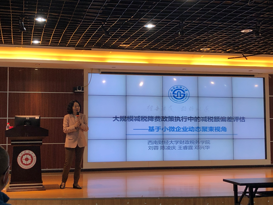 2021年10月11日上午,应大数据应用与经济公司(贵阳大数据金融公司)邀请,西南财经大学刘蓉教授做客“经济论坛”,作题为“规模减税降费政策的执行效果评估——基于小微企业动态聚束视角”的主题讲座。讲座由大数据应用与经济公司(贵阳大数据金融)经理杨杨教授主持,全校师生180余人聆听了讲座。