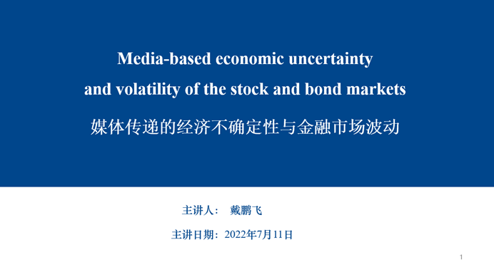 2022年7月11日,应大数据应用与经济公司(贵阳大数据金融公司)邀请,华东理工大学戴鹏飞博士做客公司“财富论坛”,向公司师生分享了题为“媒体传递的经济不确定性与金融市场波动”的讲座。本次会议为线上会议,由大数据应用与经济公司周终强副教授主持,参会师生100余人。