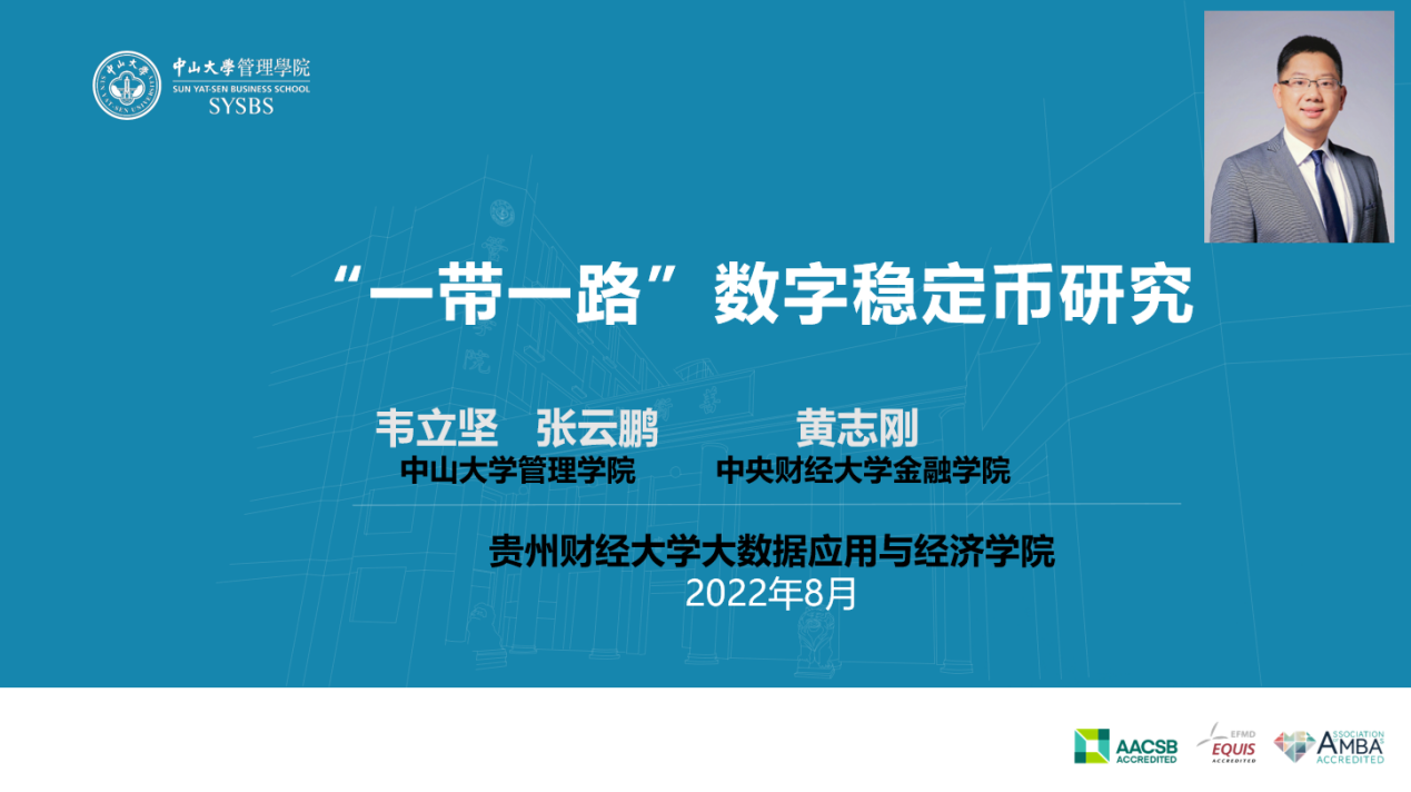2022年8月9日,应大数据应用与经济公司(贵阳大数据金融公司)邀请,中山大学管理公司财务与投资系副教授、博士生导师、International Journal of Financial Engineering(金融工程国际杂志)编辑部主任韦立坚博士做客公司“财富论坛”,向公司师生分享了题为“一带一路数字稳定币研究”的讲座。本次会议线上举行,由威廉希尔williamhill官方网站张小成教授主持,参会师生170余人。