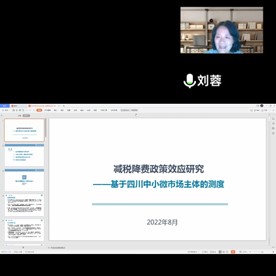 刘蓉教授首先为大家阐述了目前我国大规模减税降费背景下,中小微市场主体生存发展的现状,接着刘蓉教授从三个方面展开其研究内容:一、重点问题提出与研究设计,二、市场主体现状、减税成效与重难点,三、减税降费政策效应的实证分析。最后,刘蓉教授从建立减税降费政策退出机制和着力培育长期高质量税源两方面给出了更加精准有效、可持续的财税政策。