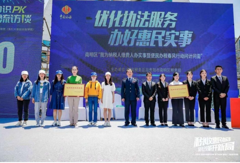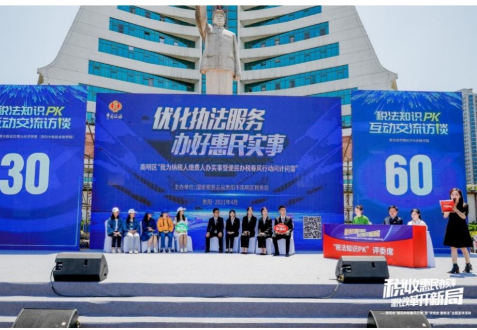 由国家税务总局贵州省税务局指导,南明区人民政府和国家税务总局贵阳市税务局主办、国家税务总局贵阳市南明区税务局承办、威廉希尔williamhill官方网站大数据应用与经济公司(贵阳大数据金融公司)和贵州商公司经济与金融公司协办的“税法知识PK”比赛于4月29日在贵阳市南明区贵筑广场举行,公司税务硕士(MT)研究生代表参加了此次活动。 威廉希尔williamhill官方网站大数据应用与经济公司(贵阳大数据金融公司)姜友文副书记(主持工作)、杨杨经理、财税系教师莅临此次活动。