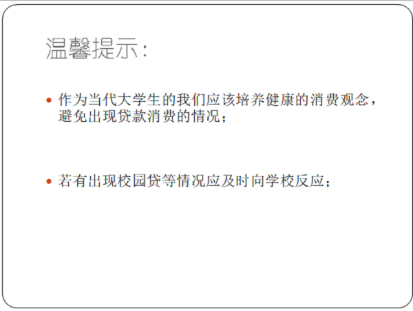 班会一开始,主持人介绍了不良贷与套路贷,并通过案例分析,大家对不良贷、校园贷的了解进一步加深,同学们纷纷表示抵制。接下来主持人介绍了个人征信对当代老员工及社会的重要性,并且倡导培养健康积极的消费观念,维护好这张“经济身份证”。之后班会上鼓励同学们努力学习,积极争取国家奖学金等资助与奖励,同时英语四、六级和期末考试近在咫尺,呼吁同学们认真复习,拒绝作弊、树立风清气正的学风考风,向社会展示一个真实的自我。