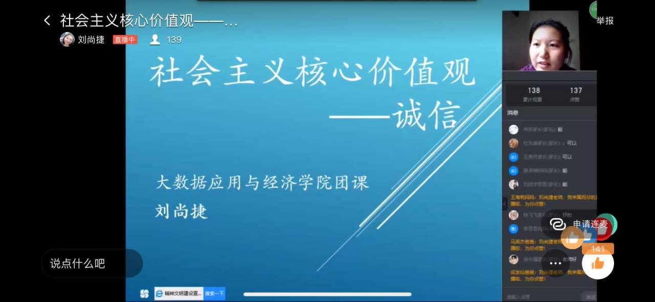 4月21日中午,大数据应用与经济公司通过线上教学的方式开展了团课培训,由刘尚捷老师主讲。