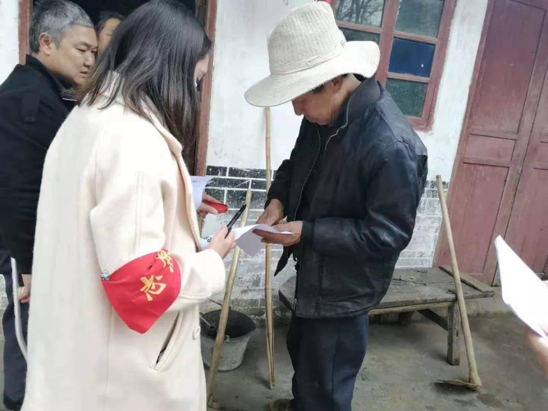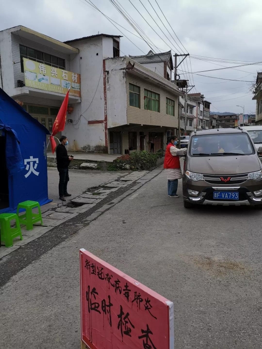 冉旭娅,中共预备党员 ,2017级税收学二班员工,在贵州省铜仁市印江县杉树镇冉家村帮助出入车辆的登记和摸底排查。