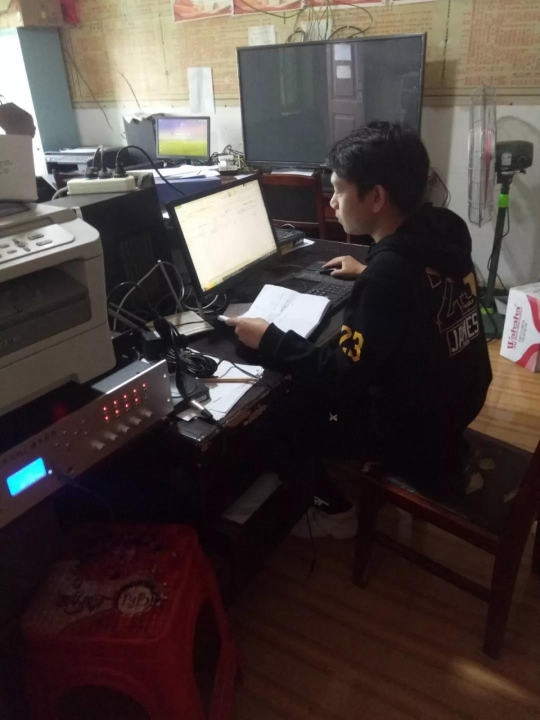 陈涛,2016级保险一班员工,在六枝特区牛场乡黄平村村委,登记录入返村人员信息。
