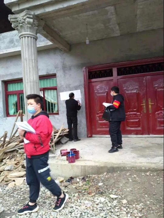 戚广, 2019级投资学类二班员工,在遵义市正安县土坪镇红花村,跟随镇政府安装防疫宣传牌;为有嫌疑的隔离人员配送物资及记录实时数据;跟随镇政府防疫先锋队对街坊做防疫宣传及每三天对街坊公布实时地区确诊或嫌疑人员的情况并告知活动路径。