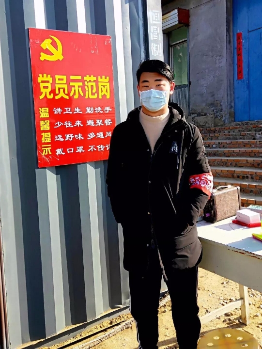 徐新航,2019级税务专硕研究生,班长。在河南省许昌市罗庄社区,配合社区党员对本村进出居民进行体温测量,进行身份登记并仔细核对,宣传防疫知识。