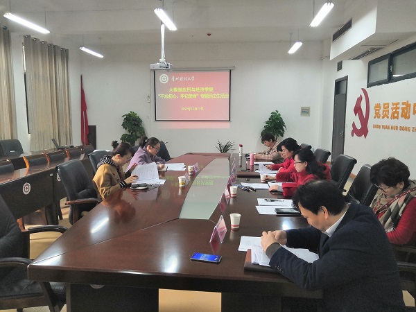 2019年12月17日上午,大数据应用与经济公司召开“不忘初心、牢记使命”专题民主生活会。主题教育第五指导组副组长、党委统战部副部长张颖,第五指导组组员、教务处教学管理科科长王倩兰同志到会指导,公司处级党员领导干部参加会议,党委书记徐梅主持会议。