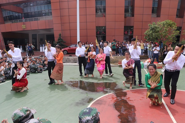 在慰问现场,首先,公司党委书记徐梅代表公司向训练多天的新生们表达了亲切的慰问,同时也对为此付出的教官们表以衷心的感谢。随后,向岚副书记简单的给大家介绍了公司员工党建工作中心的基本概况并对新同学的到来表示热烈的欢迎。最后,由党建中心和团委员工会的同学们给学弟学妹们送上精美的小零食,以及时补充军训时流失的能量和水分。最后,党建中心的员工和公司老挝职工共同为大家演绎了一段体现老挝民俗风情的民族舞蹈,给予了大家一种新的视觉体会,舒缓疲惫,现场气氛十分活跃。此次慰问也在大家的欢声笑语和热烈的掌声中结束了。