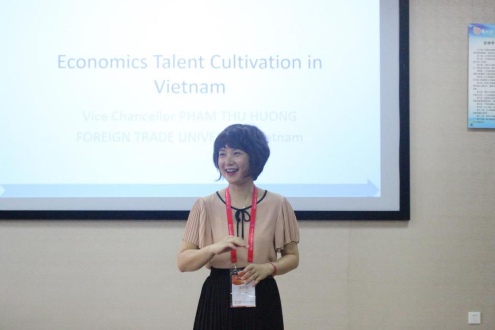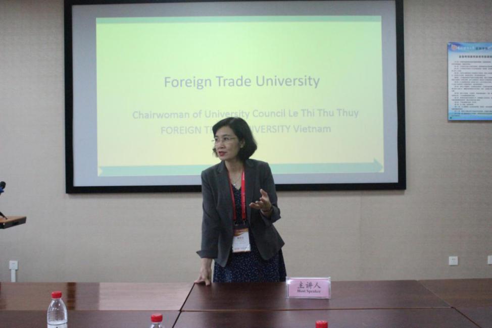 尤斯里·本·卡明教授介绍了马来西亚理工大学情况,并重点分享了马来西亚理工大学的大数据应用人才培养的相关情况,就大数据在经济人才中的技术应用方面与师生进行了交流。越南外贸大学副董事长黎氏秋水女士,介绍了越南外贸大学的情况,并强调了越南相当重视大数据应用经济人才,希望未来有更好模式和威廉希尔williamhill官方网站的师生开展学术互动和交流,副董事长范秋香女士则重点分享了越南外贸大学在经济人才培养方面的情况,特别是国际员工交流的情况,并向公司师生发出诚挚邀请,希望未来能和大数据应用与经济公司的师生到访越南外贸大学,双方师生能有更多的互动和交流。