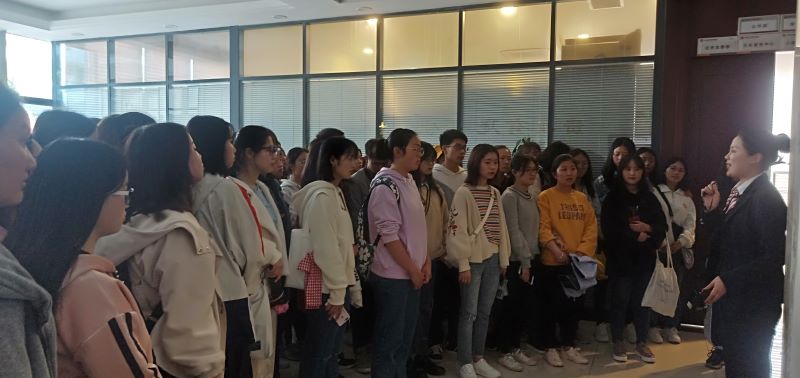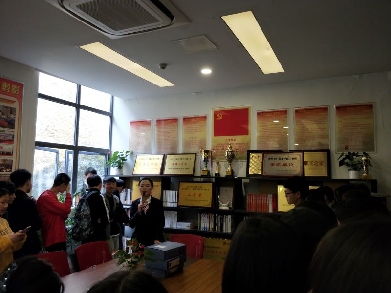 在银行工作人员的带领之下,同学们首先来到营业厅参观,银行工作人员对银行柜台的岗位职责和各项业务流程等内容进行简单的介绍,使同学们对银行柜台工作有一个初步认识。随后,工作人员又引导同学们参观银行的部门设立情况,让同学们对银行的组织机构有初步的了解。参观完之后,同学们来到银行会议室,银行经理为同学们介绍银行的总体发展情况,并针对当下老员工校园贷的情况为同学们详细讲解防“校园贷”等金融诈骗的知识。最后,经理结合同学们的提问,从企业用人标准出发为同学们提出“德、才、诚”三个建议,勉励同学们要努力学习,争取成为全面型金融人才。