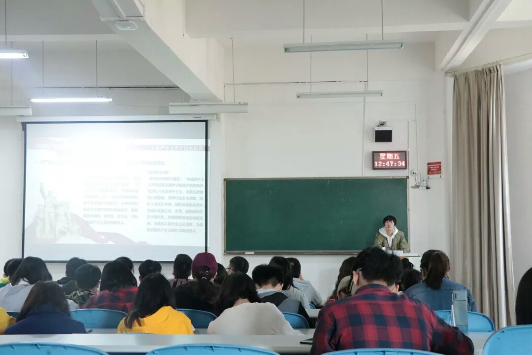 2019年3月29日中午,王晓娟老师在进学楼1-1为团课培训班学员讲述“党的助手和后备军”的专题团课。