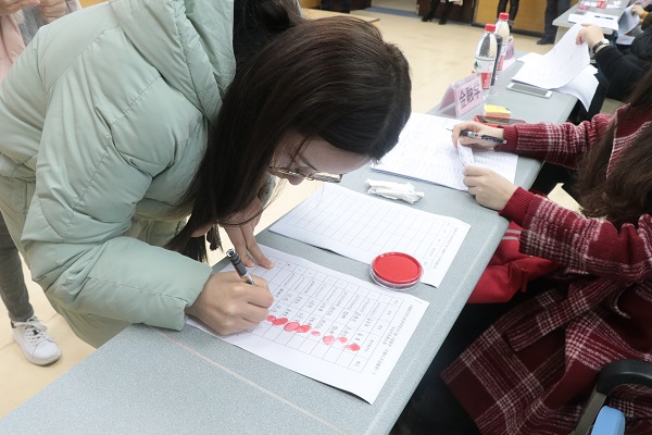 在候选区,时宏远副经理向同学们详细讲解分流程序,员工携带本人身份证和员工证按照已经公示过的总年级排名依次进行专业选取,签字确认后的选取结果不允许更改,全程摄像,以保证专业分流工作的公平、公正和公开。