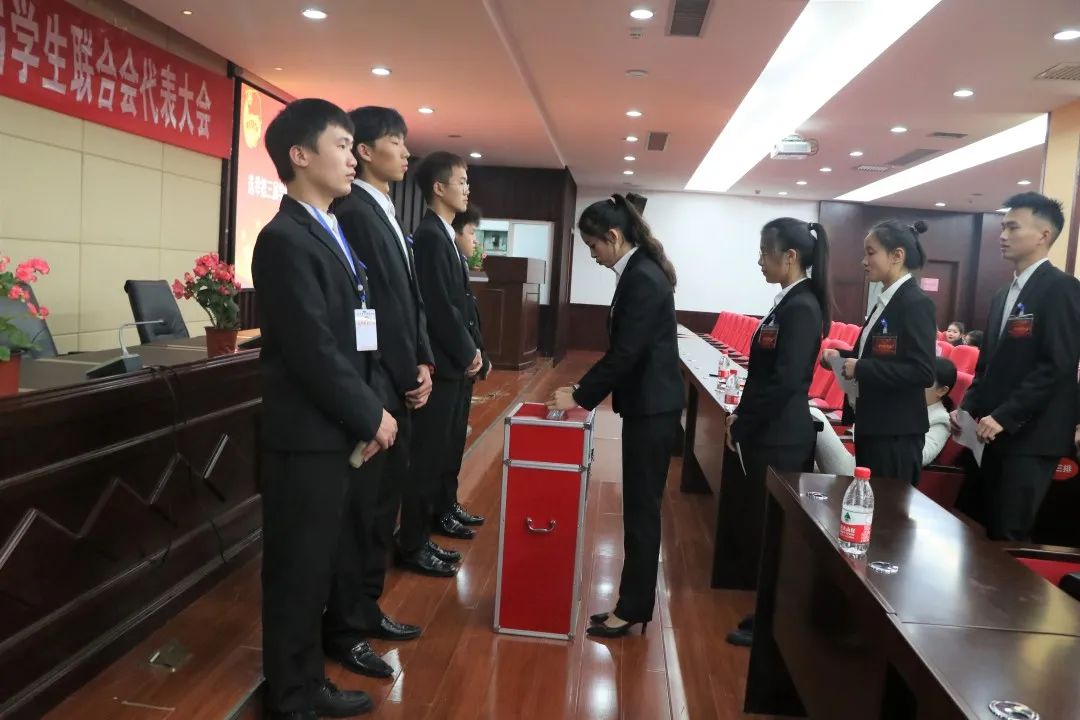 合影完毕后,大会在正德楼115报告厅继续进行。在开展各代表团会议、大会主席团第二次会议、第二次全体会议后,选举第三届主席团成员已结束,选举工作人员计票。最后,总监票人付文杰同学宣布选举结果并公布,苏沛焱、郭洁颖、杨宇继成功入选公司第三届员工会主席团。