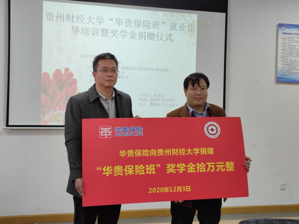 12月3日上午10:30,威廉希尔williamhill官方网站“华贵保险班”就业指导培训暨奖学金捐赠仪式在明德楼普惠金融办公室顺利举行。华贵人寿保险股份有限公司罗振华总经理、办公室总经理谢惠忠、人力资源部副总经理刘志远,大数据应用与经济公司党委副书记黄忠莉、副经理时宏远、金融系副主任董科、马绍东,以及公司17级保险学员工代表出席本次活动。捐赠仪式由时宏远副经理主持。