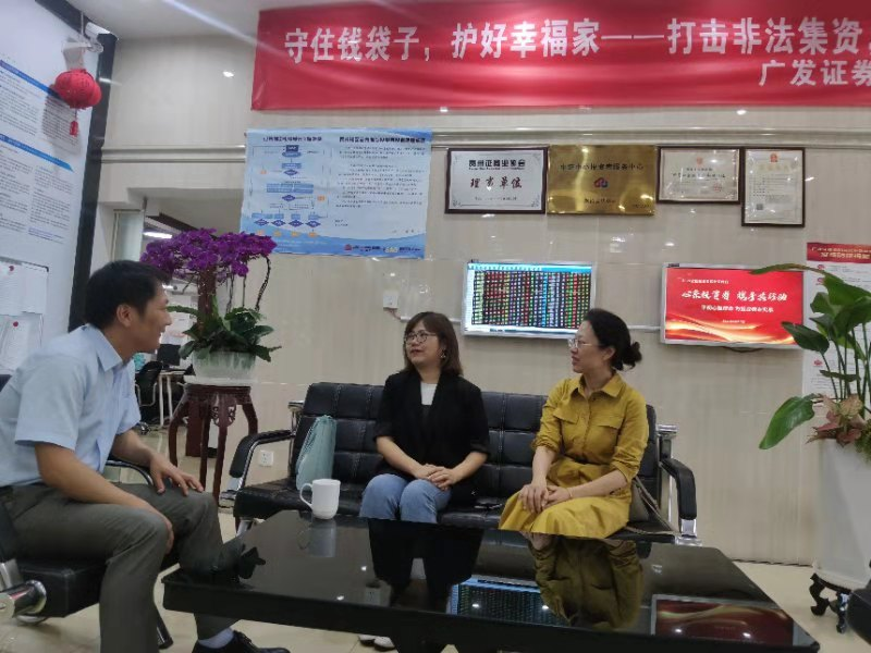 5月14日下午两点,大数据应用与经济公司(贵阳大数据金融公司)韩田副教授和马莉副教授,前往广发证券股份有限公司贵阳证券营业部进行合作交流。广发证券财富管理部副总及营销总监邓伟热情接待韩田一行,并在广发证券贵阳证券营业部进行交流座谈。