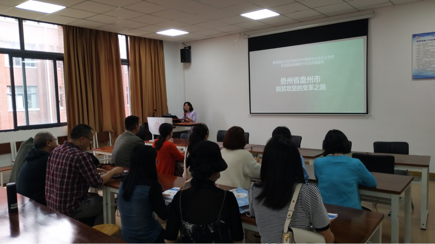 根据大数据应用与经济公司(贵阳大数据金融公司)党委党史学习教育工作部署, 5月18日下午,经理杨杨在明德楼普惠金融工作室为财税教工党支部全体党员以“贵州省盘州市脱贫攻坚的变革之路”为题讲授专题党课。