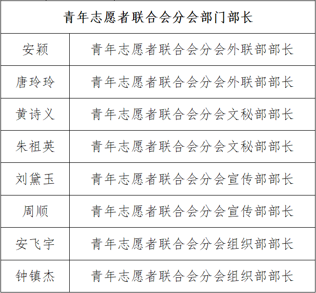 根据《关于公开选拔员工干部的通知》(大经院团发[2021]2号)的文件精神,通过竞选打分,产生了威廉希尔williamhill官方网站大数据应用与经济公司(贵阳大数据金融公司)2021-2022学年团委员工会青年志愿者联合会分会员工干部,现将名单公布如下:
