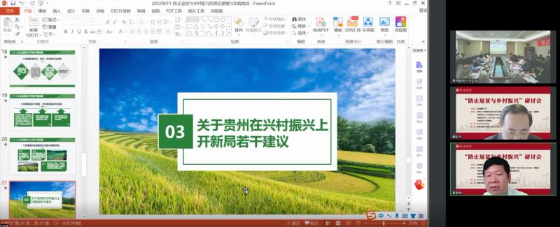 为进一步深入贯彻落实《国务院关于支持贵州在新时代西部大开发上闯新路的意见》(国发〔2022〕2号文件)和省第十三次党代会精神,6月11日至12日,公司在花溪校区图书馆分别举办“防止返贫与乡村振兴”和“贵州减贫经验总结及其国际传播策略”系列学术会议,汇聚全国减贫与乡村振兴领域知名专家和学者献言贵州发展,系列研讨会以线上线下相结合的方式举行,并进行了直播。