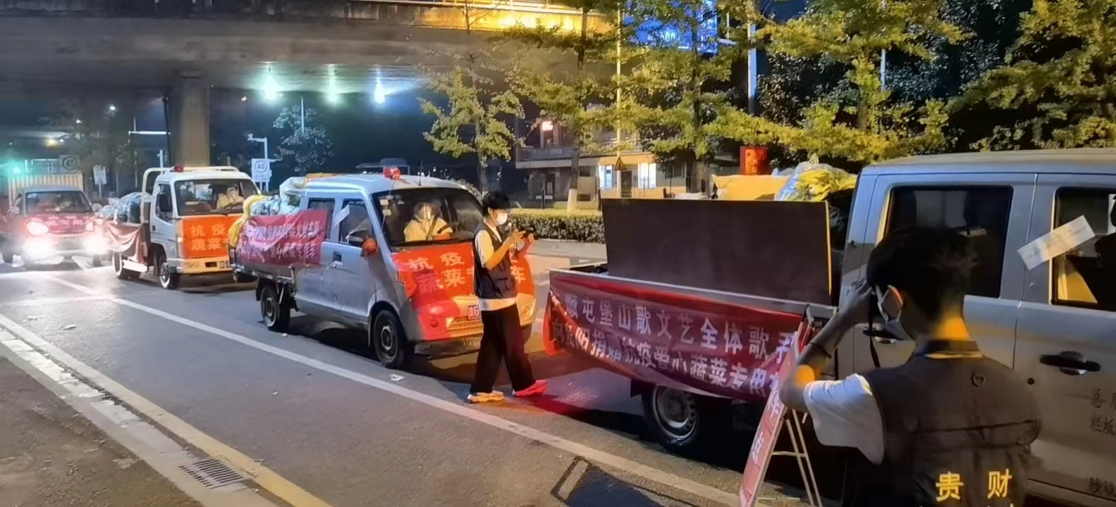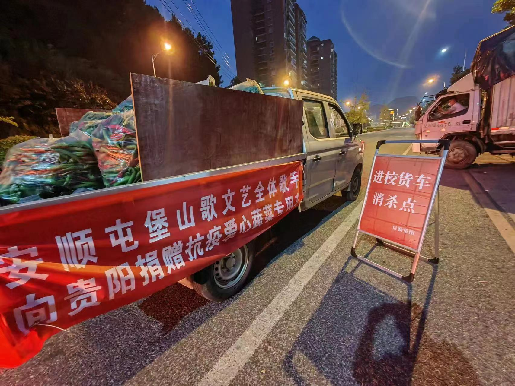 看到贵阳疫情形势严峻、物资供应紧缺,一支来自民间的文艺工作队伍——安顺屯堡山歌队团结起来。在何金菊、虞小琴、田景培等的组织下,主动积极开展物资筹集工作。这群民间文艺组织里的淳朴农民自费筹集资金购买了蔬菜。为让蔬菜尽快到达威廉希尔williamhill官方网站,山歌队还出动全体队员到安顺市长沙村蔬菜产业基地现场采摘,并连夜集中装车。在分段运输、多次消杀等一系列严格防疫措施的保障下,满载温情与情义的车队于9月9日晚19点抵达公司。