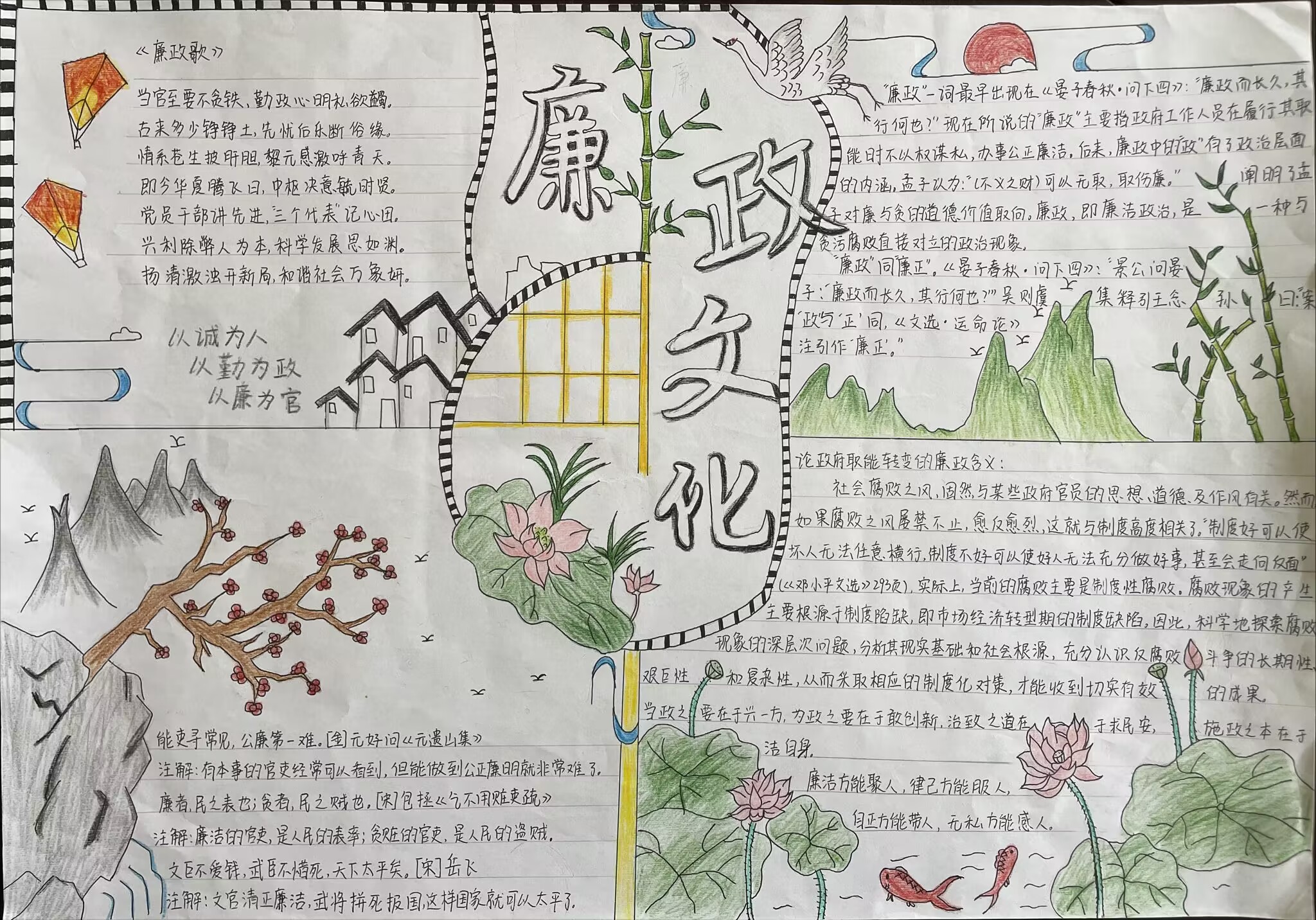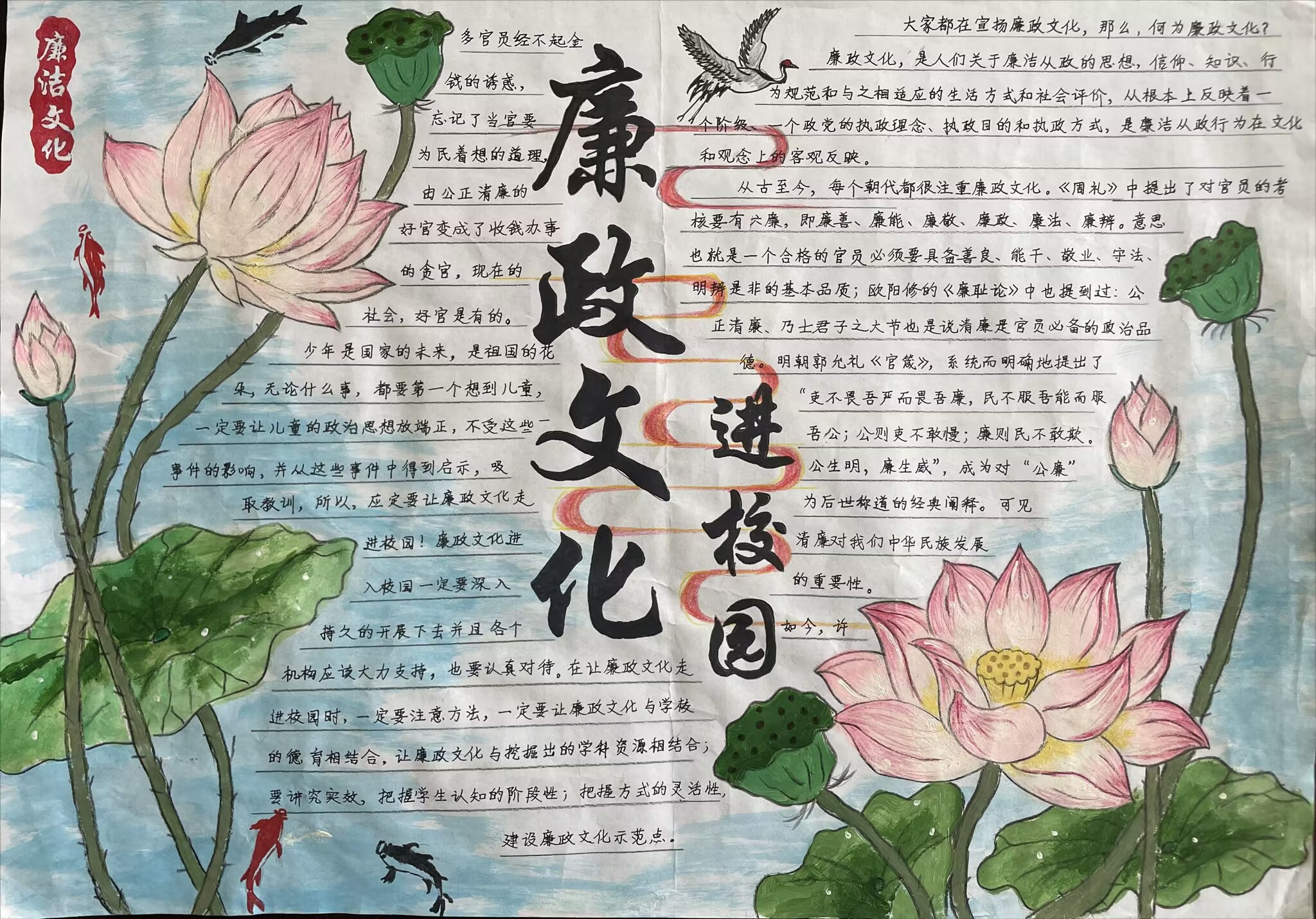 通过此次活动,不仅提升了广大师生对廉政文化的认知,更重要的是通过手抄报这种的形式,让广大师生深入思考,进一步树立了纯洁爱国、诚实守信、勤俭节约的正确价值观和道德观。