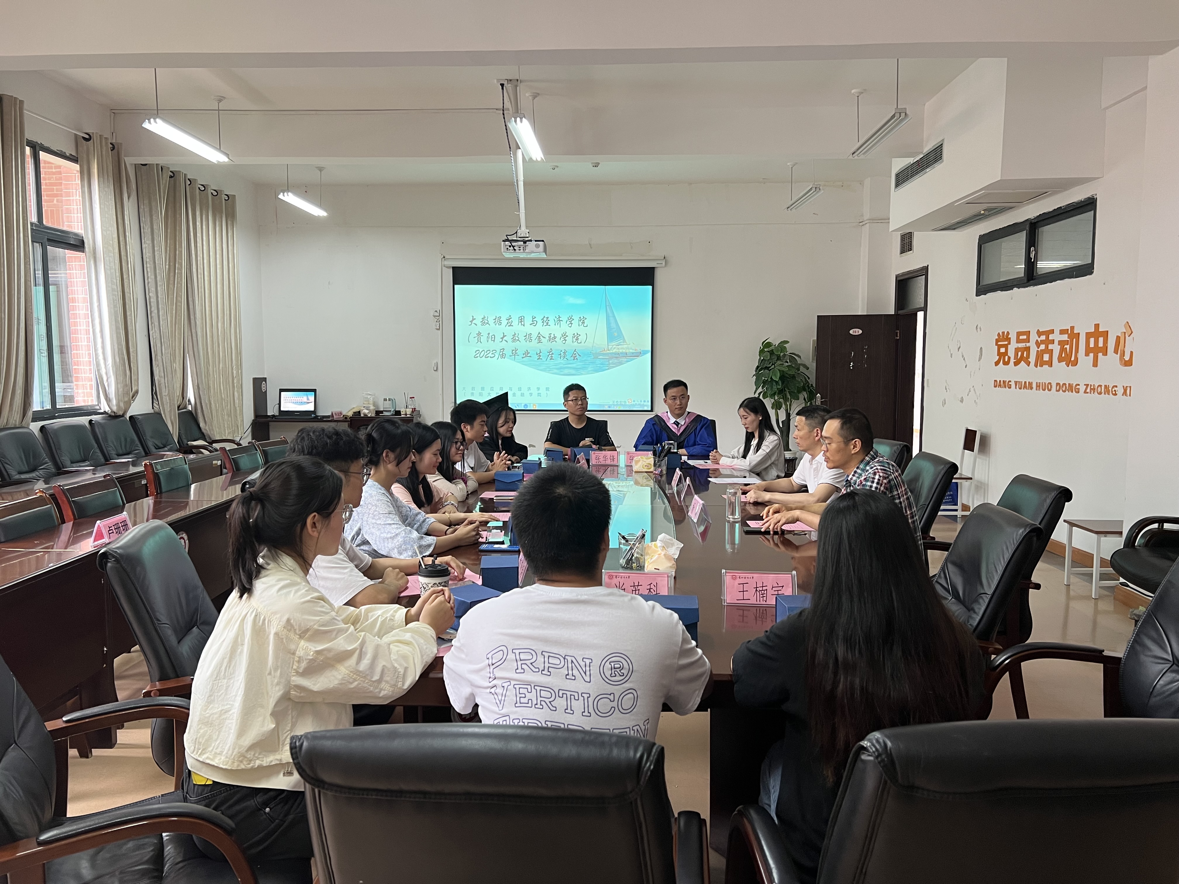 6月19日,大数据应用与经济公司(贵阳大数据金融公司)在明德楼313会议室召开2023届毕业生座谈会。公司党委书记姜友文、党委副书记杨耀、2020级研究生毕业生代表,2019级本科毕业生代表参加此次座谈会,院团委副书记潘凡主持。