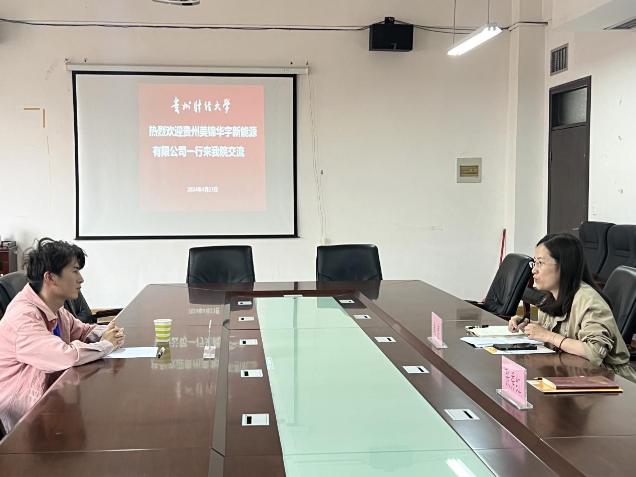 为拓宽2024届毕业生就业渠道,助力公司学子高质量就业和“留筑”发展,2024年4月23日中午,公司邀请贵州美锦华宇新能源有限公司招聘负责人陈斌参加访企拓岗座谈会,公司党委副书记周煜、毕业班辅导员田茂晶参加座谈交流。