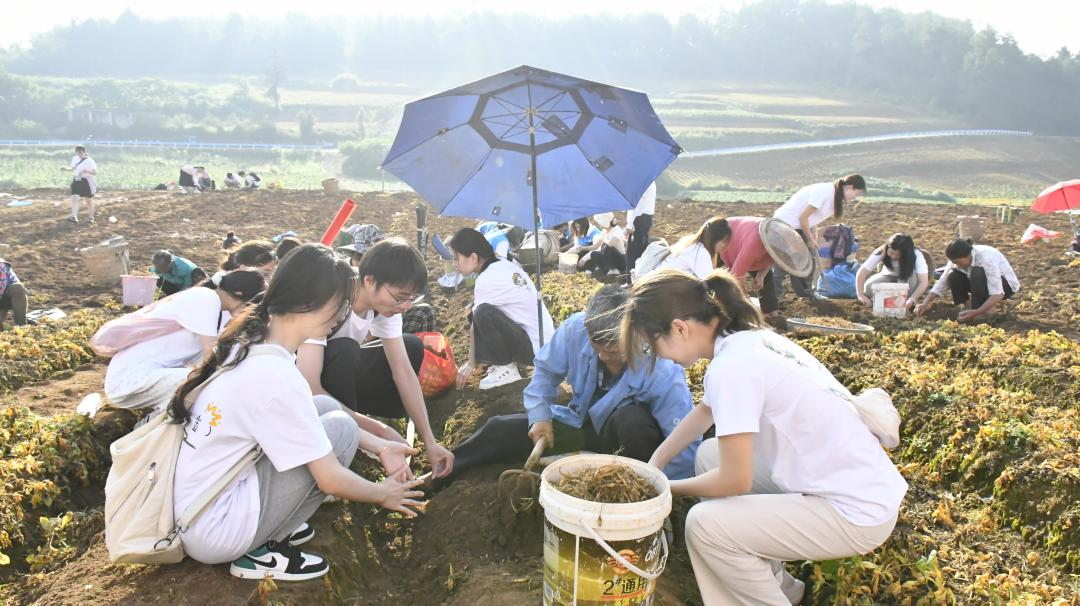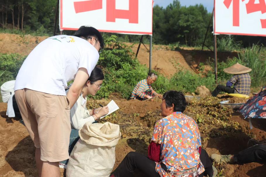 7月8日上午,英国威廉希尔英文官网“金惠黔程”队“三下乡”实践活动在瓮安县猴场镇马场坪村正式展开。“金惠黔程”队以“金惠乡村,共富未来”为主题,带着对乡村振兴的调研热情,走进马场坪村太子参种植基地。烈日下的田间,队员们挽起裤脚、撸起袖子,跟着农户俯下身学采收——指尖拨开湿润的泥土,小心翼翼拔出带着泥土清香的太子参,再仔细抖去根部的碎土。在这片充满生机的土地上,太子参正书写着一段从“无名作物”到“致富新宠”的农业传奇,成为激活乡村振兴的“金钥匙”,在田间地头奏响增收致富的嘹亮赞歌。