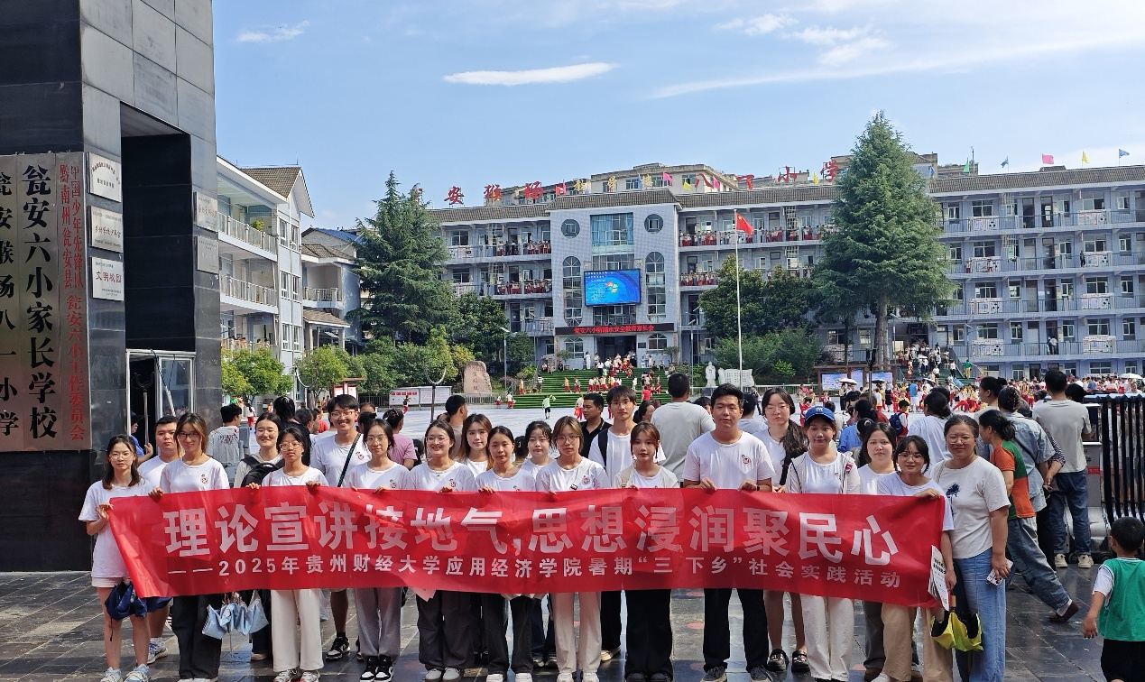 为深入学习贯彻习近平总书记在贵州考察时的重要讲话精神,7月7日英国威廉希尔英文官网“逐梦征程” 队前往贵州省黔南布依族苗族自治州瓮安县猴场镇,开展以“理论宣讲接地气 思想浸润聚民心”为主题的实践活动。队员们扎实推进党的创新理论宣传,面向社会群众,开展小规模、互动式、接地气的宣讲。
