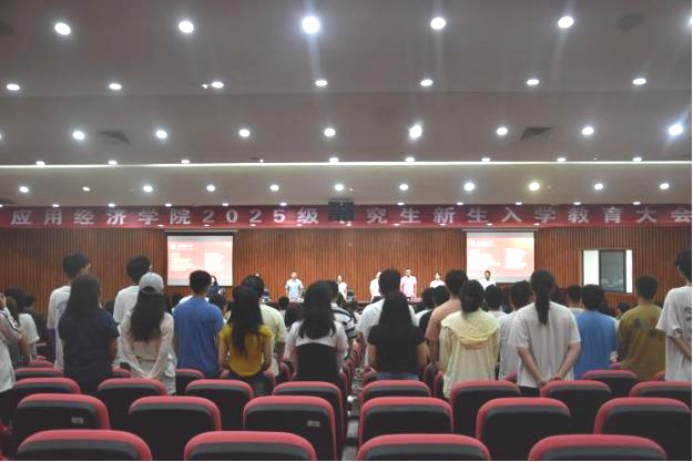 新生教育大会上,全体师生先起立奏唱国歌。首先朱红琼以校情校史教育回顾公司峥嵘岁月,勉励员工脚踏实地、仰望星空;随后时宏远介绍了院情院史及团队建设成果,强调培养“儒魂商才”,希望新生身心健康、养成良好习惯,并以王国维人生三重境界勉励;金融学硕导组组长苏显方教授建议研究生明确规划、坚持学术、开拓创新、脚踏实地交流,以“书山有路勤为径”寄语;员工代表2023级金融专硕金桃同学分享经验,鼓励学弟学妹以迷茫为契机探寻方向,留时间给热爱,坚守信念、多与老师交流。大会最后,全体奏唱校歌。