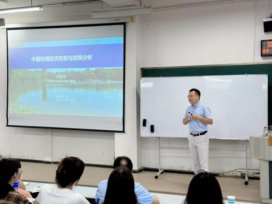 8月26日上午,公司邀请了北京大学经济公司赵留彦教授在进学楼1-1教室作题为“当前中国宏观经济形势与政策”的主题讲座。讲座由时宏远教授主持,2025级全体研究生新生参与聆听了讲座。