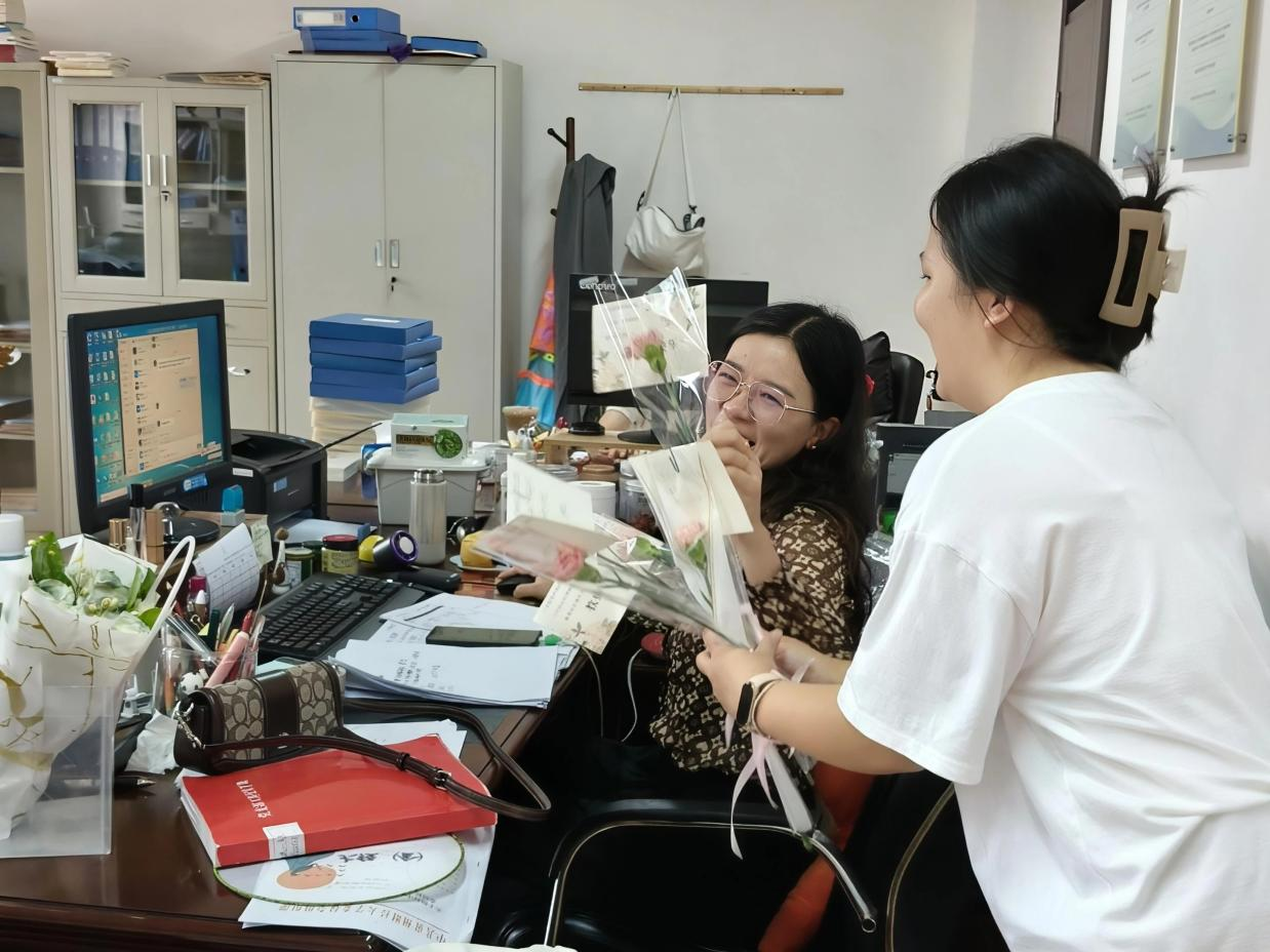 活动伊始,员工代表们手捧精心准备的鲜花与写满祝福的贺卡,向老师们致以最崇高的节日问候。礼物虽不贵重,但每一份都体现了员工们的心意。随后老师与同学们亲切交谈,分享教学与学习的点滴趣事,欢声笑语不绝于耳,整个活动现场成为了洋溢感恩与温情的海洋。
